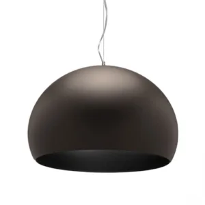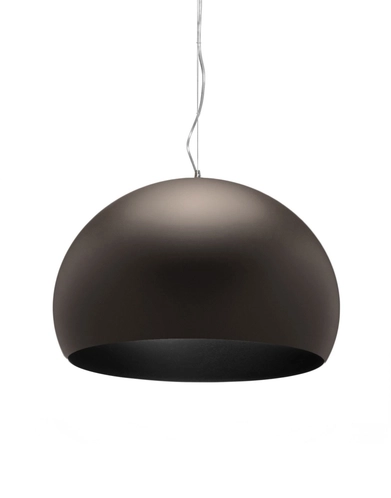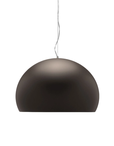 FL/Y is an essentially-styled suspension lamp. The particular transparency of the material and the sheen of the colours recreate the idea of a soap bubble, shimmering iridiscently in the light. The shade is not perfectly hemispherical, with the cut-off falling just below the level of the diameter, offering greater concentration of the light. The lamp is available in three different sizes: Fl/Y (diameter 52cm, shade depth 33cm), Small Fl/Y (diameter 38cm, shade depth 28cm) and Big Fl/Y (diameter 83cm, shade depth 55cm).