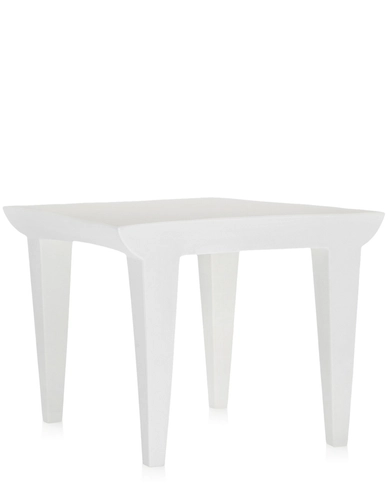 Bubble Club is the industrial sofa in which rotational moulding technology has enabled Kartell to mass produce. A large two-seater sofa, characterised by the soft line of the armrests which contrast with the more rational line of the backrest; an essential silhouette, reminiscent of “grandma’s sofa”. Bubble Club joins the armchair and occasional table, made in the same finishes and colours, to become a real family, an “industrial lounge” for furnishing a garden, a poolside or a terrace.