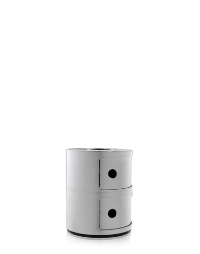 The modular elements were designed to meet different needs and to fit perfectly into every room in the home. Componibili first appeared in 1967 and have since become a timeless furnishing classic. Today’s Componibili are 32 cm in diameter and come in three sparkling metallic finishes. This model is available in two fixed compositions of two or three non-stackable elements.