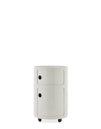 The 42 cm round version of Anna Castelli Ferrieri’s I Componibili now comes in an all-new look thanks to a new industrial print that enhances both quality and appearance. There are more colours to choose from too, with the addition of nuances already available for the 32 cm size complemented by original new shades that blend contemporary taste with elegant references to the past. Available in configurations of 2 or 3 indivisible elements, this version of I Componibili is the latest technical evolution of a classic from the Kartell catalogue. Available in Bordeaux, Dove Grey, Orange, Petroleum, Green and White.