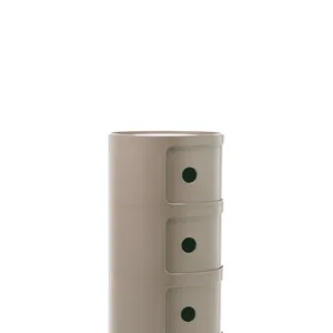 The modular elements were designed to meet different needs and to fit perfectly into every room in the home. Componibili first appeared in 1967 and have become a timeless furnishing classic. Today’s Componibili are 32 cm in diameter. Thanks to fixed compositions of two, three or four elements, these products are both functional and practical in all environments. This model comes in six glossy finishes and one matte silver finish.