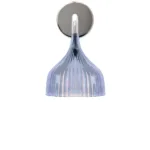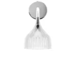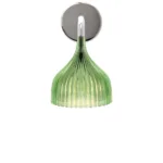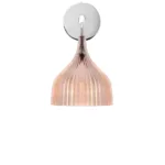 FATA The magic comes from the shade and from a new mould forming and engraving process that reflects light in infinitely different ways depending on how you view the lamp. As soon as Fata is switched on, it becomes hidden in an amazing game of light, like a little magic tower that adds mystery and cheer to the home. The bowl-shaped applique comes in three colours – amber, smoke and transparent.