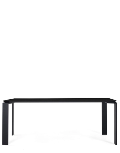 This functional and refined table also has a strict geometric design. Thanks to the elegant design solution, the position of the slim table top allows for the convenient positioning of drawers or storage furnishings for computer hardware. They can be placed side-by-side to form office workstations.