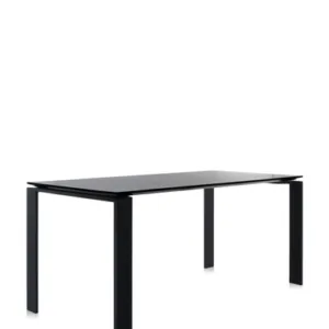 This functional and refined table also has a strict geometric design. Thanks to the elegant design solution, the position of the slim table top allows for the convenient positioning of drawers or storage furnishings for computer hardware. They can be placed side-by-side to form office workstations.