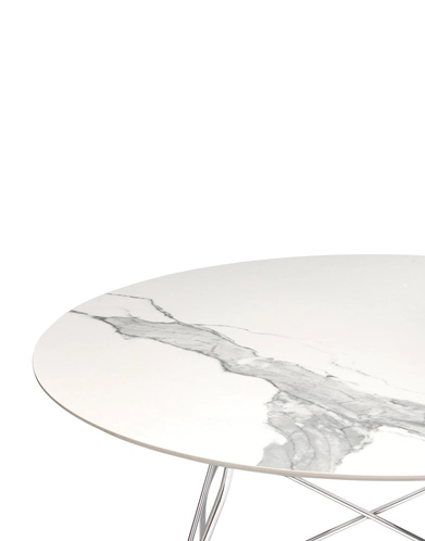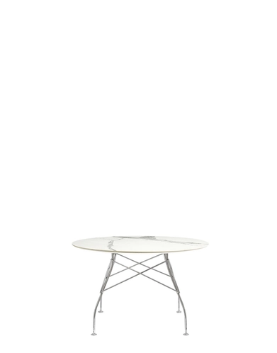 A family of tables ideal for the home and office. The light steel structure is made particular by the use of the cross element that joins the legs on each of the four sides, supporting the top. The collection comprises square, oval and round versions.