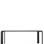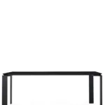 A family of tables ideal for the home and office. The light steel structure is made particular by the use of the cross element that joins the legs on each of the four sides, supporting the top. The collection comprises square, oval and round versions.