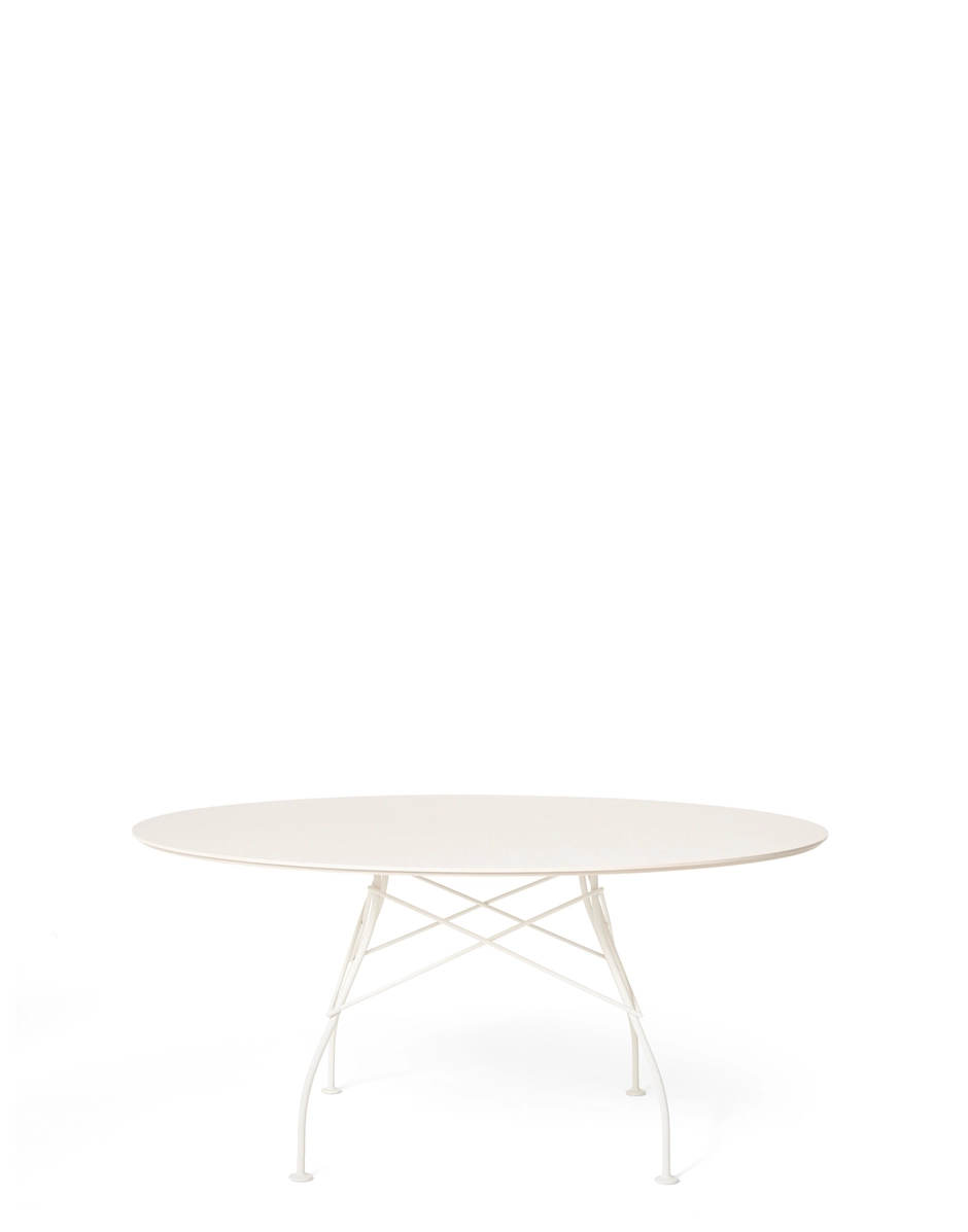 A family of tables ideal for the home and office. The light steel structure is made particular by the use of the cross element that joins the legs on each of the four sides, supporting the top. The collection comprises square, oval and round versions.