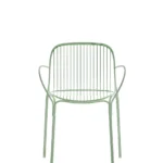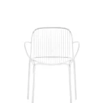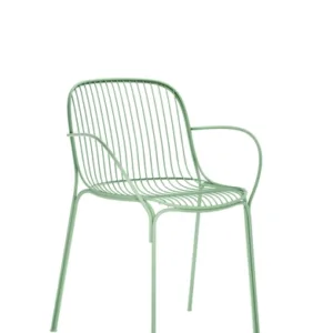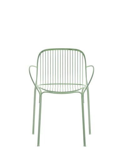 for the greening of the Kartell catalogue, and uses the welded wire process to shape it. The result is an essential and functional product that is nevertheless rich in emotion. Metal wires form well-defined yet lightweight structural parts of the collection’s chair, chair with arms, bistro table, armchair, divan and side table. The various articles come in white, Bordeaux, black and green.