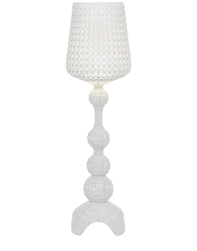 The Kabuki floor lamp is injection moulded. The technology used makes it possible to create a woven structure similar to lace with a unique perforated surface through which the light is diffused. Available in indoor and outdoor versions.