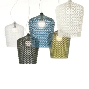 The Kabuki lamp is injection moulded. The technology used makes it possible to create a woven structure similar to lace with a unique perforated surface through which the light is diffused.