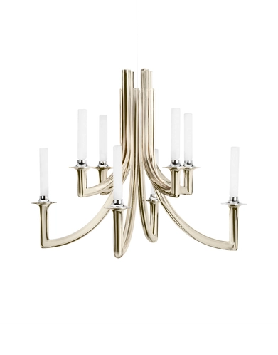 Many different styles, from 18th century eclecticism to contemporary minimalism, come together in Philippe Starck’s KHAN chandelier to create a new icon of elegance and modernity. The symbolism of the design is complemented by the technological innovation of Kartell’s new polycarbonate 2.0 in the colours black, champagne and clear.