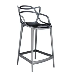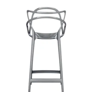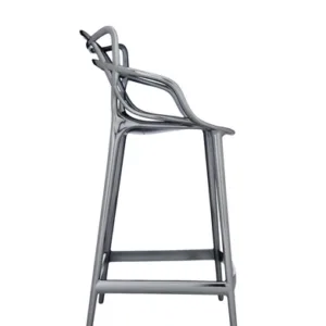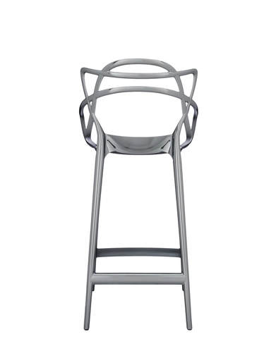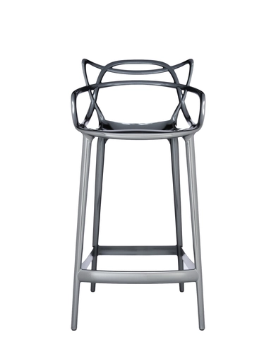 In the stool version of the Masters chair, the legs lengthen and the seat becomes more compact, but the unmistakable graphic style of the structure, created by interweaving the silhouettes of three iconic chairs, remains the same. Ideal for both domestic and contract use, the Masters Stool also lives perfectly outdoors.
