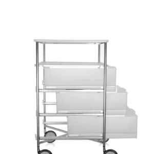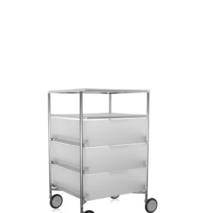 Mobil is a system of storage units that can be used throughout the home and office, for a variety of purposes. The basic element of the system is the drawer, alternated with intermediate shelves and tops. Mobil can be a simple chest of drawers, featuring between two and six drawers, and be fitted with comfortable handles. It can be set on castors or fixed feet and this makes Mobil suitable for use in different contexts: from the bedroom to the living room, bathroom or study, and in the office as a desk drawer unit for storing stationery and documents.