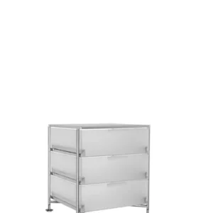 Mobil is a system of storage units that can be used throughout the home and office, for a variety of purposes. The basic element of the system is the drawer, alternated with intermediate shelves and tops. Mobil can be a simple chest of drawers, featuring between two and six drawers, and be fitted with comfortable handles. It can be set on castors or fixed feet and this makes Mobil suitable for use in different contexts: from the bedroom to the living room, bathroom or study, and in the office as a desk drawer unit for storing stationery and documents.