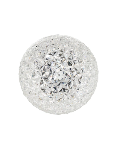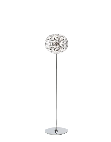 A family of lamps: suspended, for a coffee table and with a metal structure, and the most recent floor version of the lamp is available in two heights: 130 and 160 cm. The distinctive trait is the shape of the slightly elliptical transparent diffuser, which is characterised by a multi-faceted surface, both inside and out, which creates a rich tapestry of reflections.