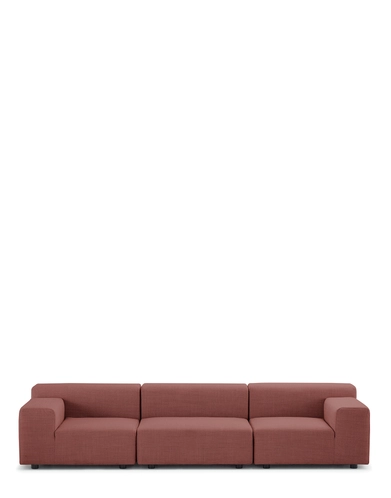 Plastic Outdoor is the outdoor version of the modular sofa with severe lines characterised by large cushions made of soft polyurethane upholstered in fabric. The Plastics collection is completed by an armchair with the same features and by a pouf, which can be used individually or as part of an arrangement.