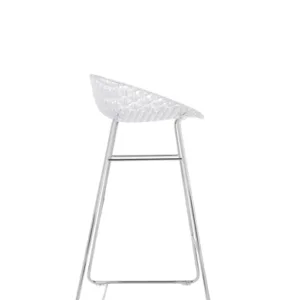 The Smatrik stool joins the family of seats created by Tokujin Yoshioka and is crafted using a mould which enables the recreation of a 3D net that overlaps and crosses over.Thanks to a special injection technology, the layers of transparent or mass-dyed polycarbonate create a structure moulded in a single piece, which simulates a metallic net, with a painted or chrome-plated structure, painted with stainless steel for the outdoor version.