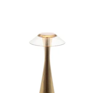 A table lamp with an elongated shape: the silhouette recalls the shapes of the Space Needle, the tower that made the Seattle skyline famous.