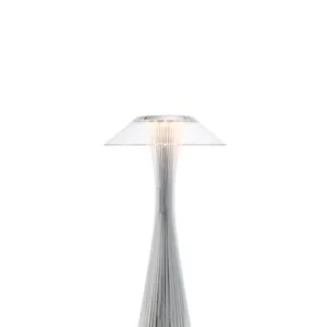 A table lamp with an elongated shape: the silhouette recalls the shapes of the Space Needle, the tower that made the Seattle skyline famous.