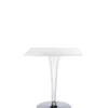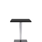 The TopTop table line is distinguished by its leg which can be either a round or square transparent section with a multi-faceted surface and metal core.