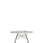 The TopTop table line is distinguished by its leg which can be either a round or square transparent section with a multi-faceted surface and metal core.