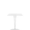 The TopTop table line is distinguished by its leg which can be either a round or square transparent section with a multi-faceted surface and metal core.
