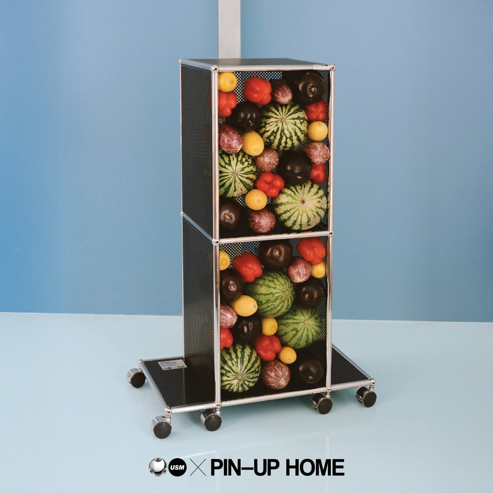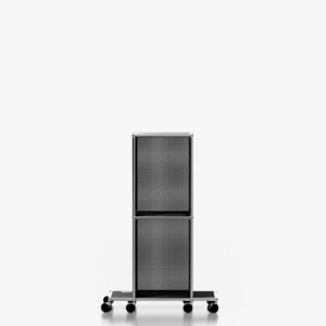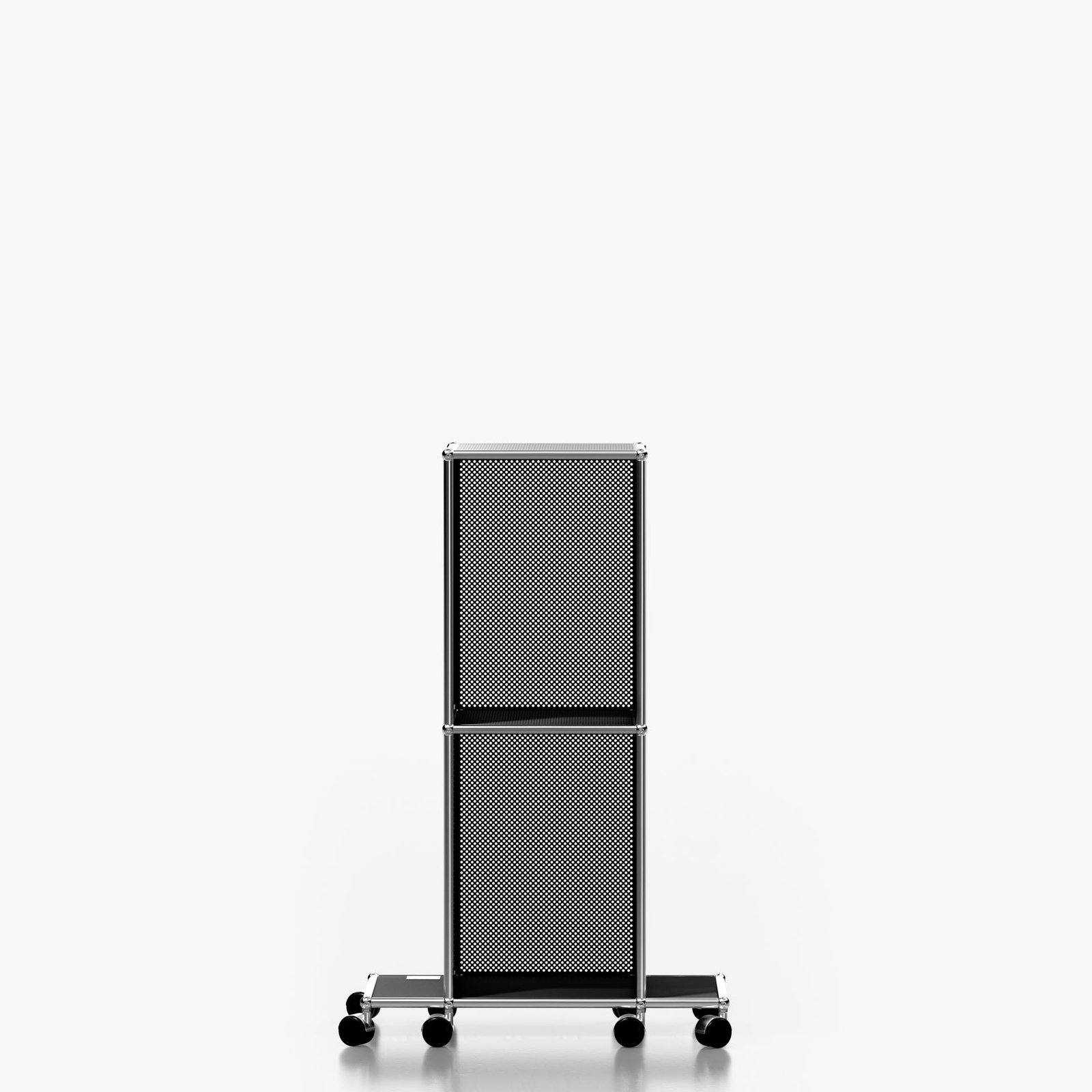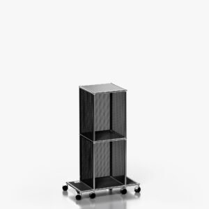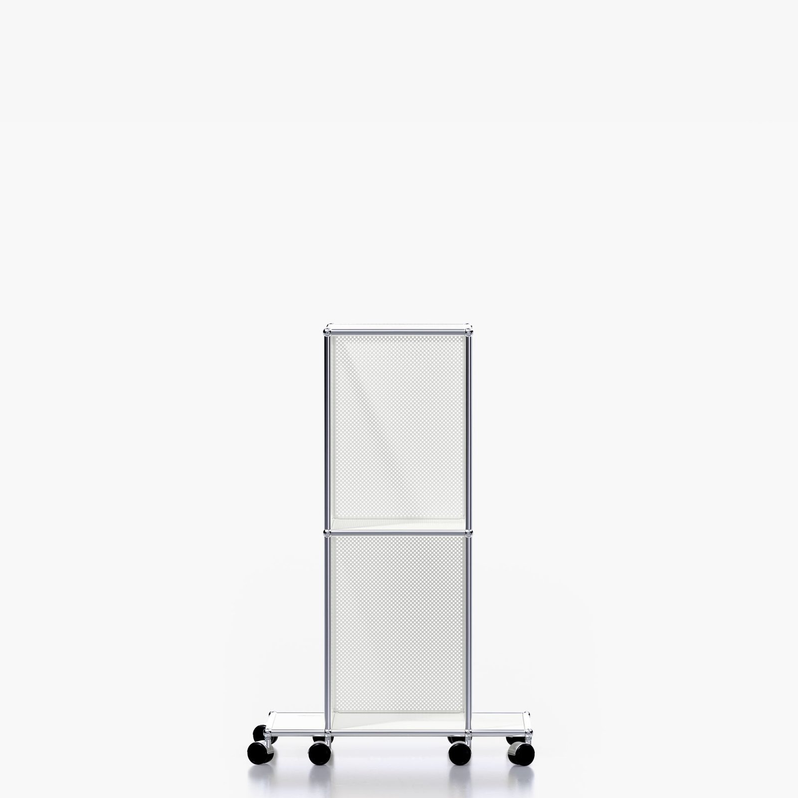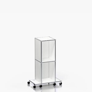 The USM Haller system is made of powder-coated steel panels and chromed steel frame.