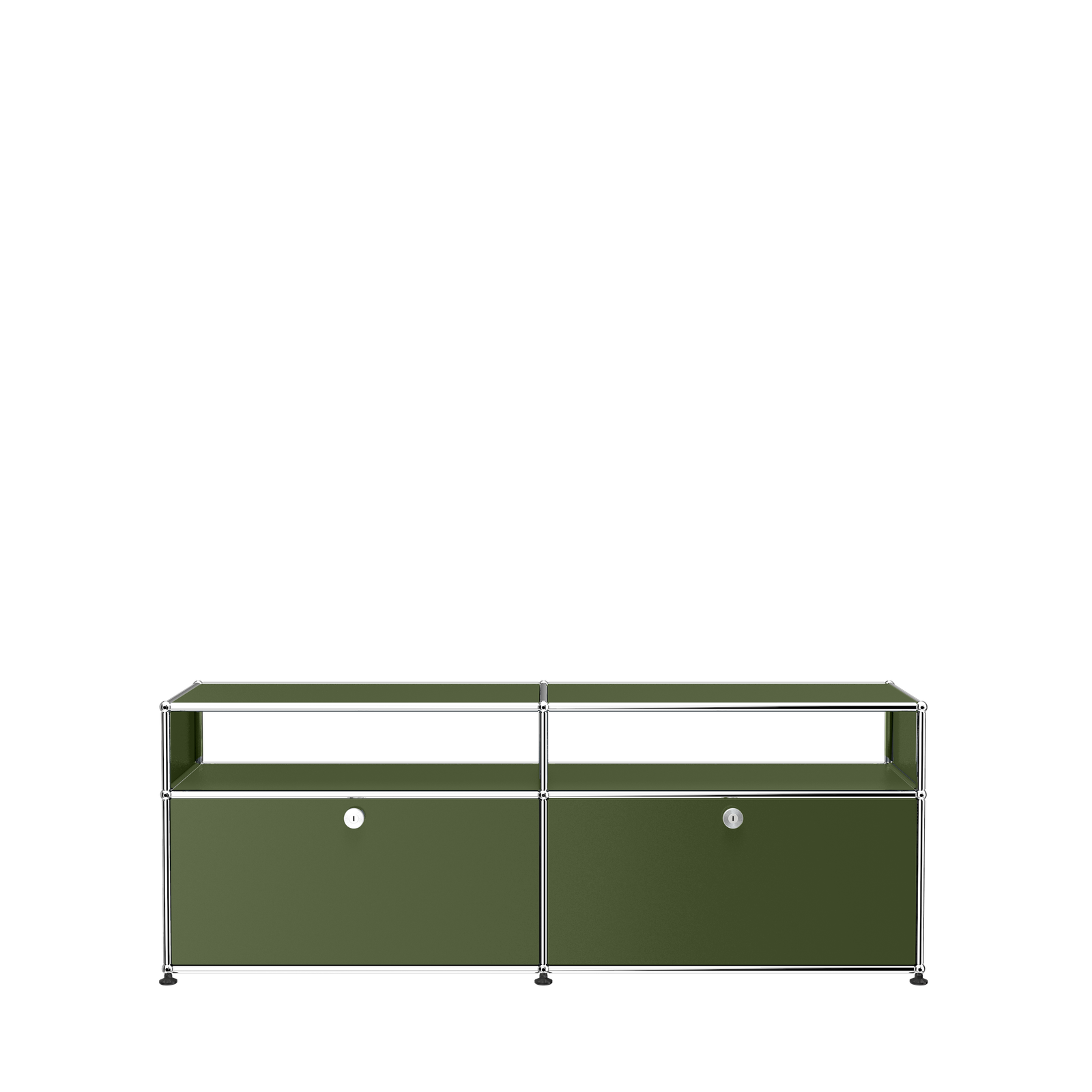 Designed by Swiss architect Fritz Haller and Paul Schaerer in 1963. Made from powder coated steel and chrome plated steel tubes, the USM Haller system is built to last for generations and adapt as your needs change. Made in Switzerland.