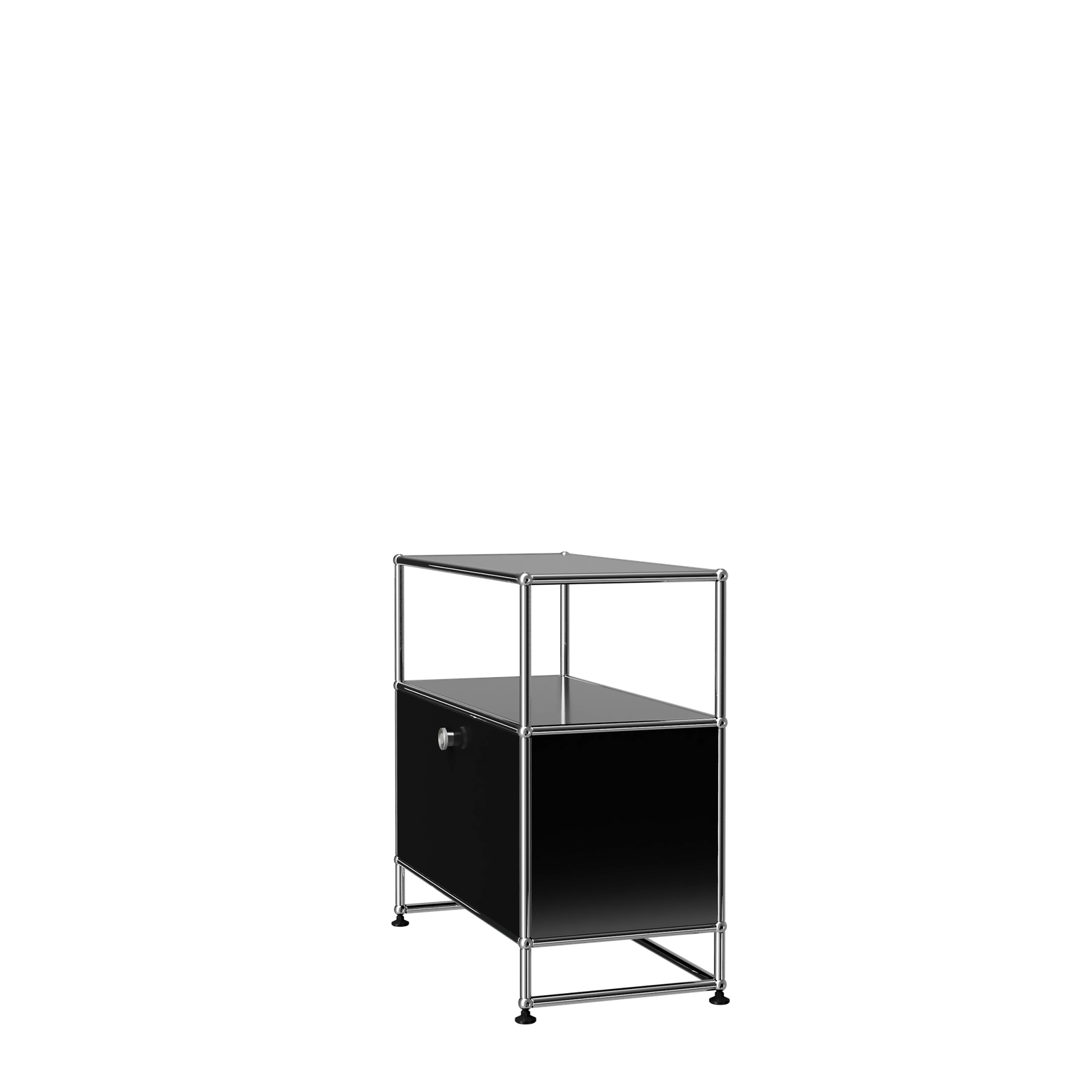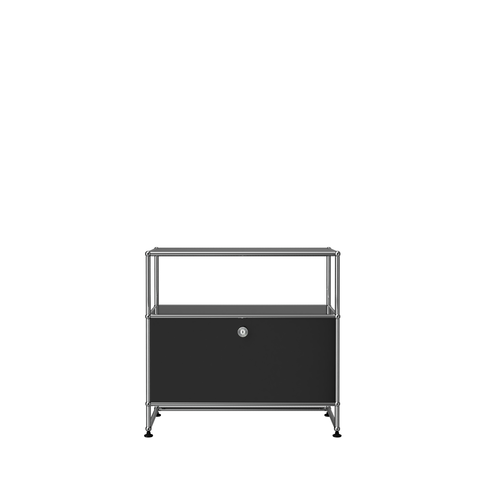Designed by Swiss architect Fritz Haller and Paul Schaerer in 1963. Made from powder coated steel and chrome plated steel tubes, the USM Haller system is built to last for generations and adapt as your needs change. Made in Switzerland.