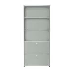 The USM Haller system is made of powder-coated steel panels and chromed steel frame.